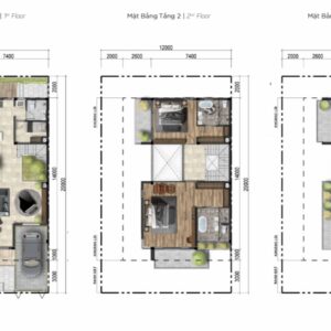 - Tầng 2: Khu vực nghỉ ngơi với 2 phòng ngủ rộng, phòng ngủ master có WC riêng sang trọng và ban công đón gió mát.